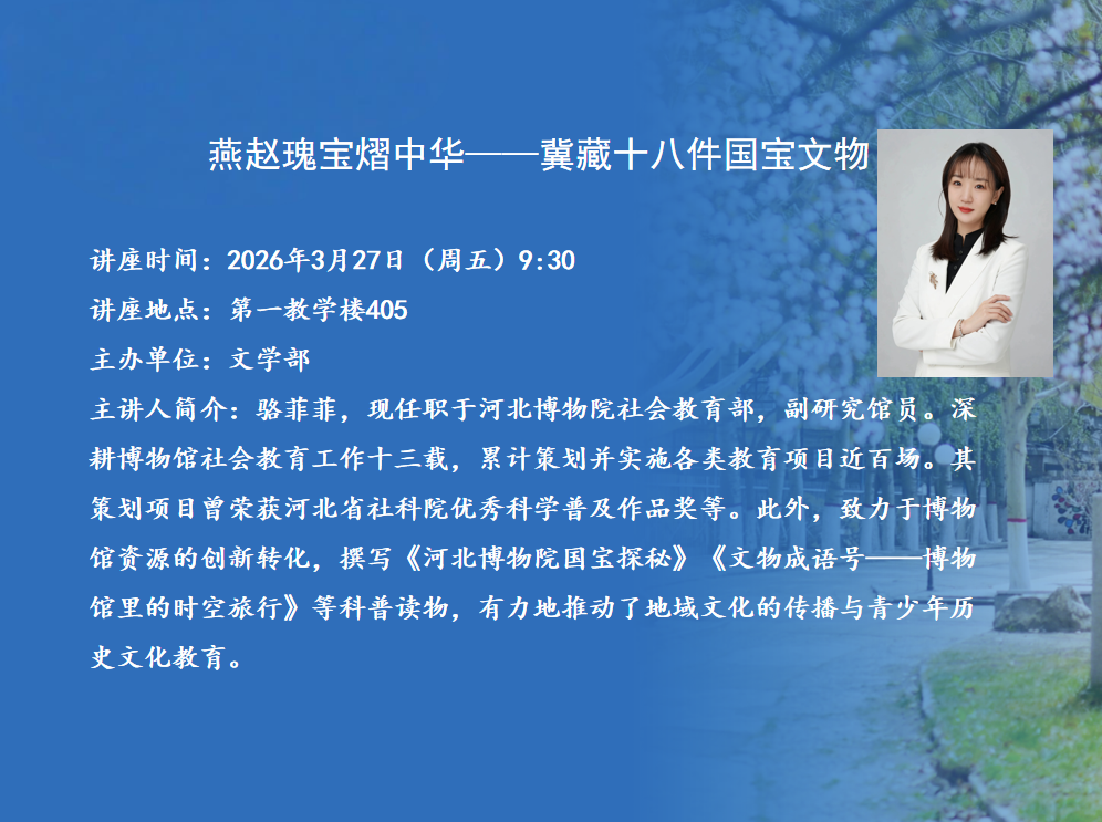 主题:未竟之艺时间:2026年3月30日—4月3日地点:沁芳园(图书馆西侧花园)简介:本次展览集中展出2023级、2024级书法学、视觉传达设计、环境设计、动画专业学生假期学业提升成果。作品紧扣“喜迎新春”“美丽河北”两大主题,题材丰富、形式多样,兼具传统笔墨与现代设计语言。展览旨在引导学生珍惜时光、勤学不辍,树立假期亦精进的优良学风,鼓励大家将新春民俗文化底蕴、燕赵大地秀美风光与艺术创作想象力有机融合,以笔墨与创意抒发对家乡的热爱。诚邀全体师生莅临观展、交流指导。主办单位:艺术学部