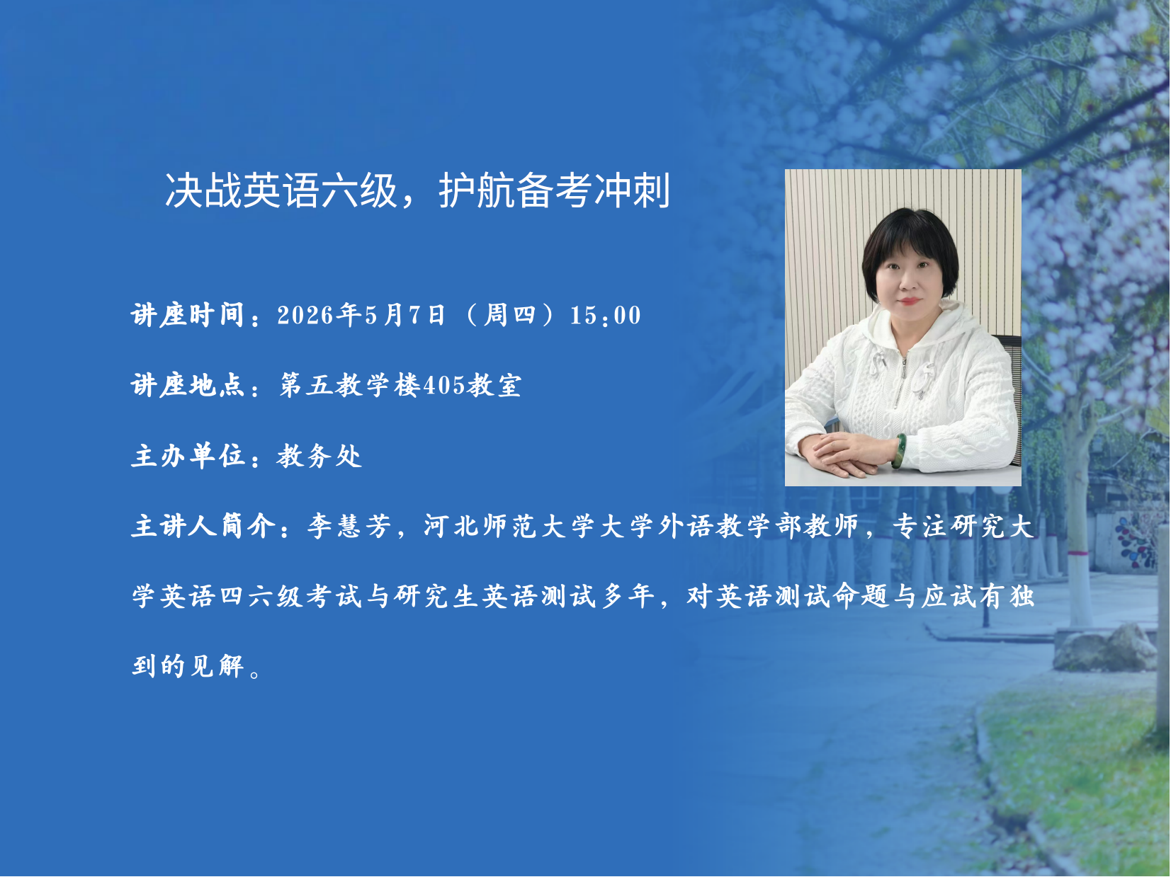 主题:未臻之艺时间:2026年4月15日——4月17日地点:沁芳园(图书馆西侧花园)简介:本次展览集中展出2023级、2024级美术学专业(中国画、油画方向)学生假期学业提升成果,作品题材丰富,融合传统与当代艺术形式。展览旨在引导同学们充分利用假期时间提升自我,鼓励大家将河北地域文化、燕赵壮丽风景与艺术创新有机融合,以美术创作抒发对家乡的热爱。诚邀全体师生莅临观展、交流指导。主办单位:艺术学部