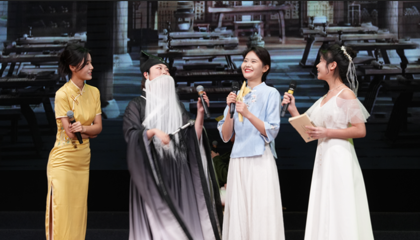 演出在朗诵《百年沧桑》中拉开帷幕,同学们以深沉有力的声音,再现历史沧桑与民族精神;《诗韵中国,燕大相传》将经典诗文与时代气息相融合,传递文化传承的当代意义;配音节目《诗韵长安,声动万里》带领观众穿越时空,感受声音塑造的壮美长安。