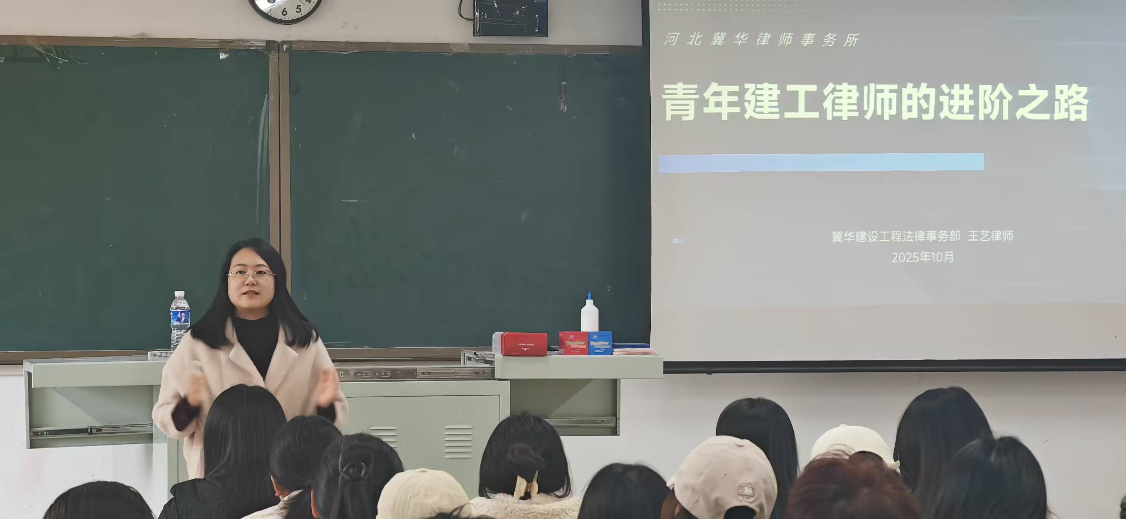 法政学部启动第二期“双师同育,赋能增长”律师进课堂系列活动-缩小 放大+ 2025-11-03在全面依法治国深入推进、新时代法治人才培养要求持续强化的背景下, 汇华学院法政学部立足法学教育与实践深度融合,于2025年10月31日下午在6教403教室启动第二期“双师同育,赋能增长”——律师进课堂系列活动。首场讲座特邀河北冀华律师事务所资深律师王艺律师主讲,2023级法学专业全体学生参与,旨在通过行业精英的实战经验,切实提升学生法律思维与职业竞争力。 活动伊始,张子君老师阐述了活动举办的背景与深远意义,强调在服务国家重大工程建设法治需求的背景下,提升学生法律思维与实操技能的紧迫性。 王艺律师围绕三大核心维度展开。首先,她以个人职业转型为脉络,精辟剖析“从学生到律师”、“从律师到建工律师”、“从建工律师到建工团队”三大关键抉择,揭示律师职业“机遇与挑战并存、高投入高回报”的本质,并通过亲身经历指出“学会接受与自洽”是执业生涯的基石。随后,她以“傻大笨粗”四字箴言生动勾勒建工律师的日常与心法,最后,王艺律师系统拆解了律师专业化成长路径,重点剖析如何深耕建工领域:从法规案例深度研习、行业知识系统积累到合同文本精细打磨,并着重强调实习平台对年轻律师融入专业化团队的关键作用,激励大家“将‘傻大笨粗’的实干精神淬炼为专业引领的卓越力量”。 此次讲座为同学们揭开了建设工程法律服务领域的神秘面纱,王艺律师结合典型案例对法律条文实操应用的生动解析,为同学们未来规划从律师助理迈向团队合伙人的成长路径提供了清晰且极具价值的行动指引。她希望在场学子,在法律职业的广阔天地里勇于探索,持续精进,为服务国家建设领域的法治需求贡献智慧与力量。