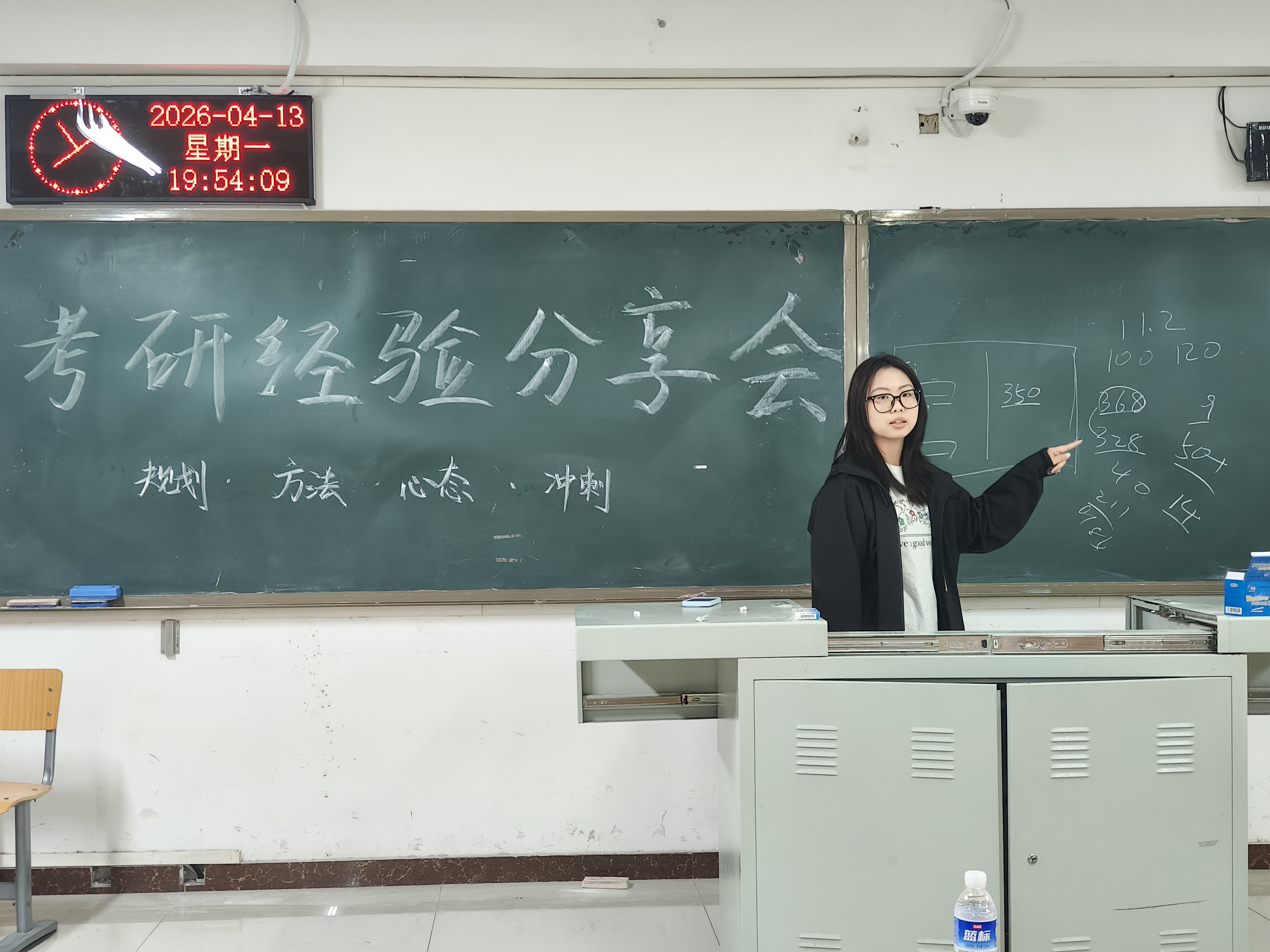 2023级思想政治教育1班召开考研经验分享会-缩小 放大+ 2026-04-14为帮助同学们理清考研备考思路、制定科学复习规划、缓解备考迷茫焦虑,2023级思想政治教育1班于4月13日在第六教学楼303室召开考研经验分享会。本次活动特邀2022级思想政治教育专业付鹏、赵烨楠、李思涵主讲,围绕考研全周期备考规划与心得体会两大核心,为同学们研途前行指明方向。