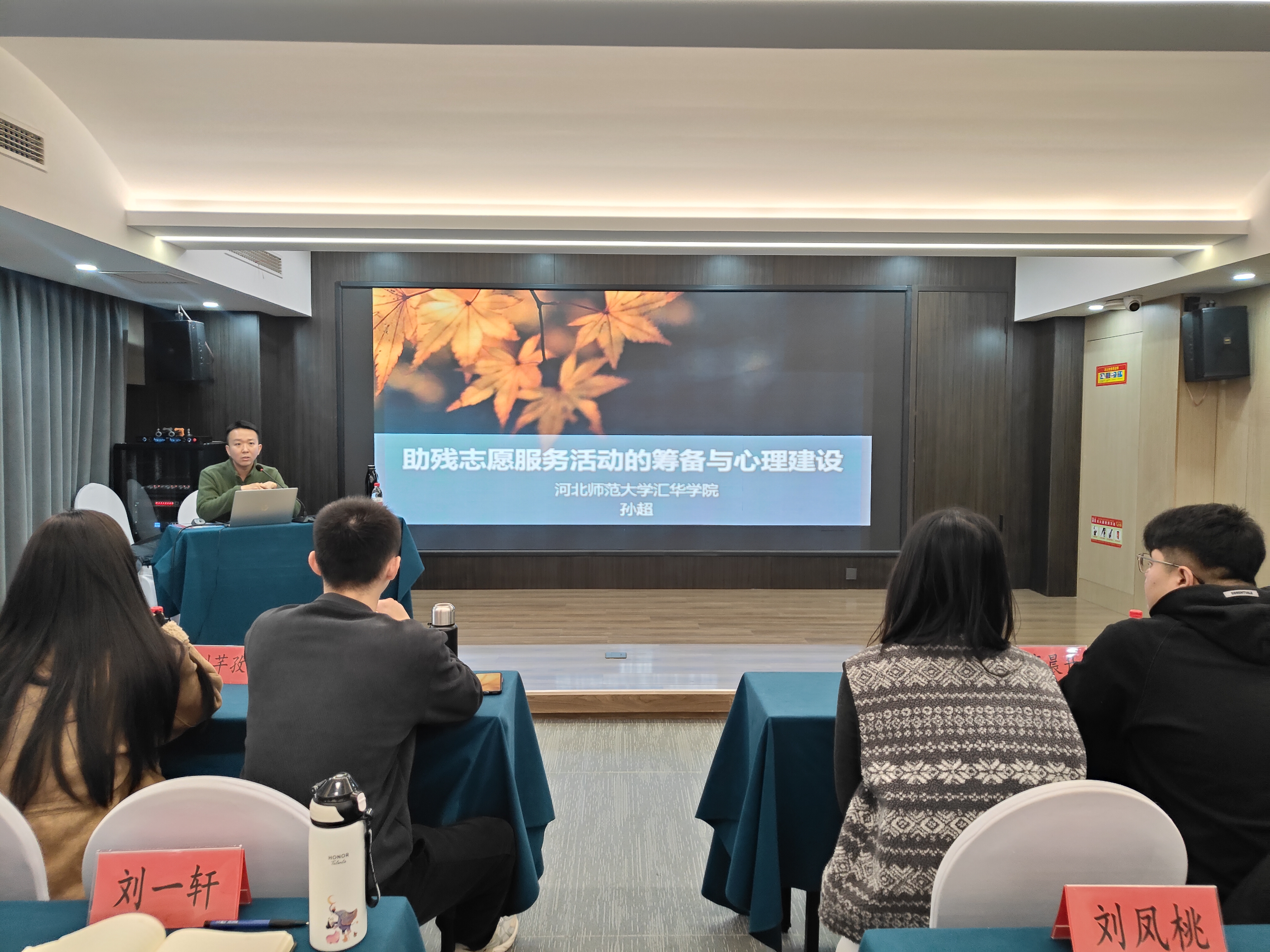 本次讲座主要包含四个部分,第一部分孙超详细介绍了汇华学院特殊教育专业做助残志愿服务活动的缘起以及所取得了成绩。第二部分针对目前我省特殊教育学校中常见的孤独症儿童、智力障碍儿童、感官障碍儿童、其他情绪行为异常儿童,详细介绍了上述几类特殊儿童的身体和心理特点,以及如何针对上述儿童开展有针对性的志愿服务活动。第三部分介绍了志愿者在做志愿服务过程中如何进行自我心理调节。第四部分对所有的志愿者提出了希望和要求,希望大家能认真履行助残志愿者职责,鼓励志愿者们奉献青春热情,为特教事业的发展贡献力量。