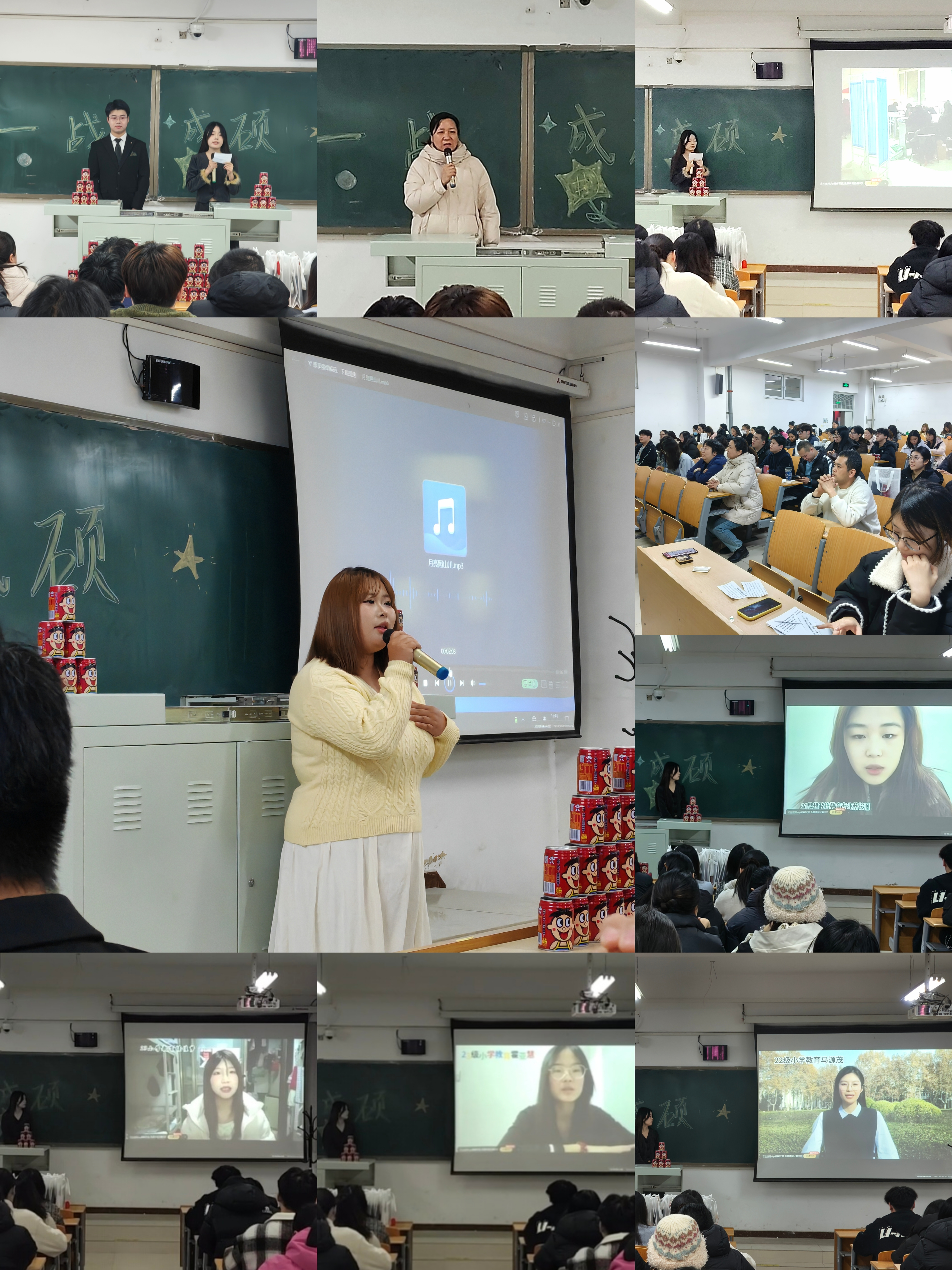 一段精心制作的考研祝福视频在屏幕上缓缓播放,视频精心收录了往届考研成功学子的经验箴言、同期备考伙伴的互助誓言。这段饱含深情的视频,如同温暖的阳光,瞬间驱散了考研学子们备考期间可能存在的疲惫与焦虑,让他们深切感受到来自老师以及同学们的强大后盾和集体温暖。