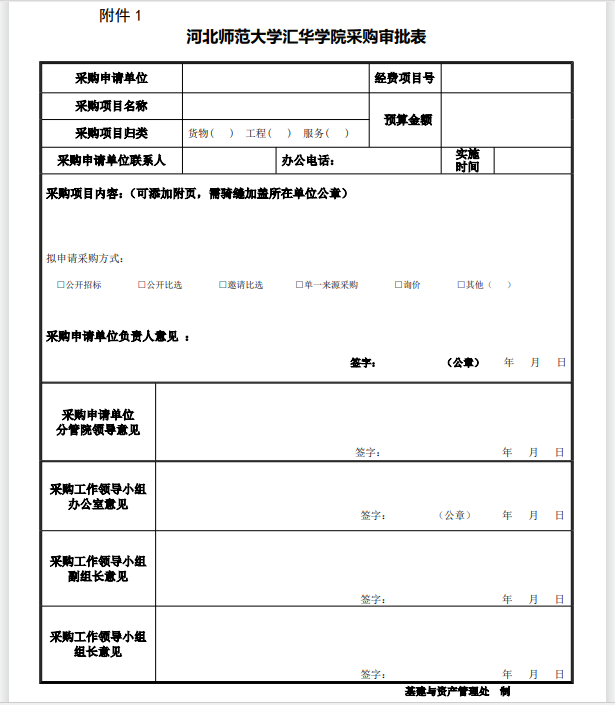 >河北师范大学汇华学院采购审批表(2025年版)