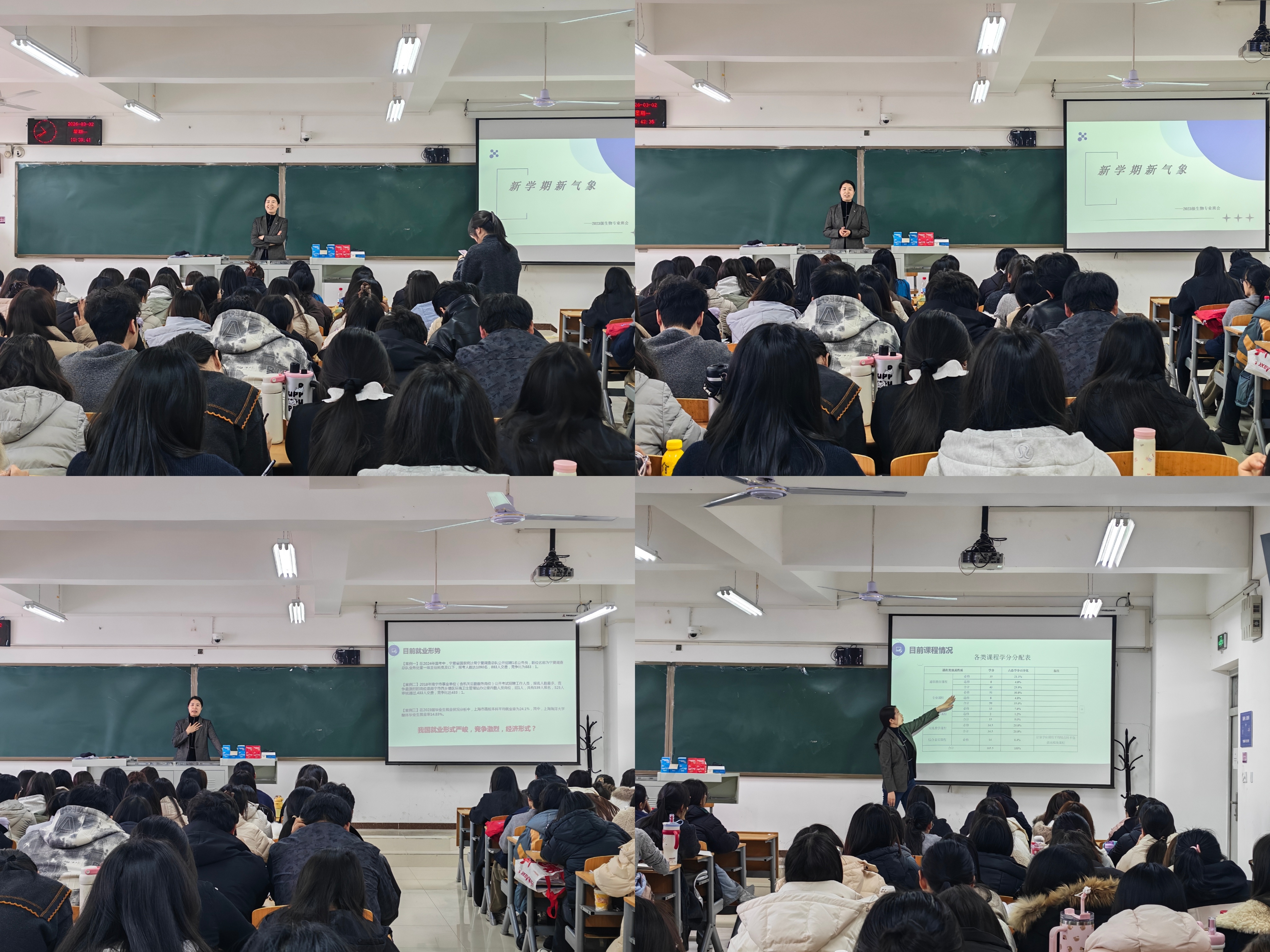2026年3月2日上午,2023级生物科学专业在第五教学楼504教室召开2025—2026学年第二学期开学班会。本次班会是同学们结束实习返校后的首次集中会议,也是辅导员赵春红老师与全体同学的第一次正式见面。上午10时30分,班会准时开始,赵老师首先请纪律委员进行点名,她一边看着名单,一边微笑着辨认每一位同学,认识了刚刚实习归来的118名生物科学专业学生,现场氛围温馨而融洽。