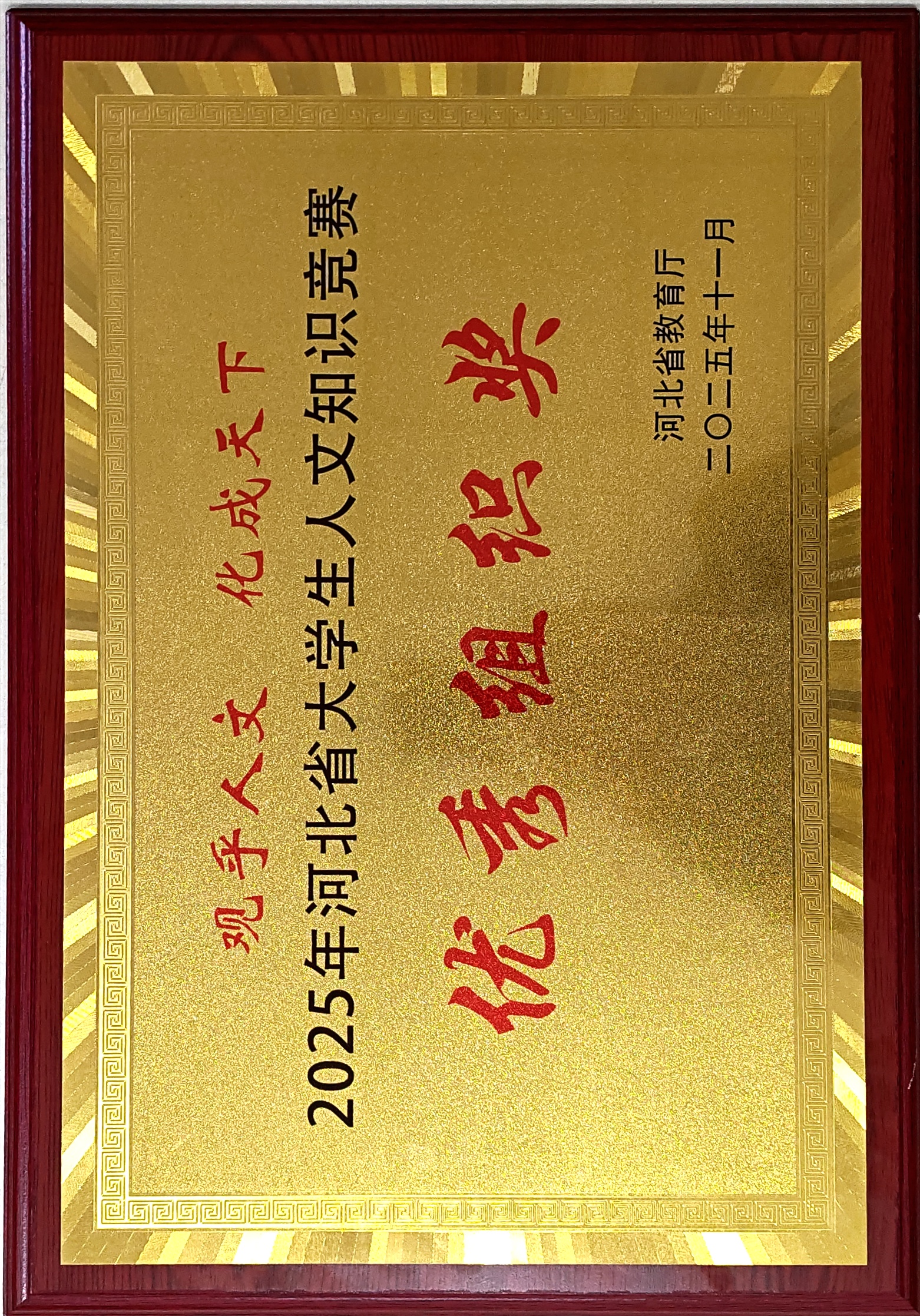 由我学部学生宋昕伦、田耀祖、孟诗奇、国一凡、张云帆组成的河北师范大学汇华学院代表队顺利完赛,取得团体赛第四名并荣获二等奖。个人赛方面:田耀祖荣获一等奖并成功晋级华北五省(市、自治区)大学生人文知识竞赛决赛,孟诗奇、宋昕伦荣获二等奖、张云帆荣获三等奖。我院荣获优秀组织奖,我学部指导教师荣获优秀指导教师奖。