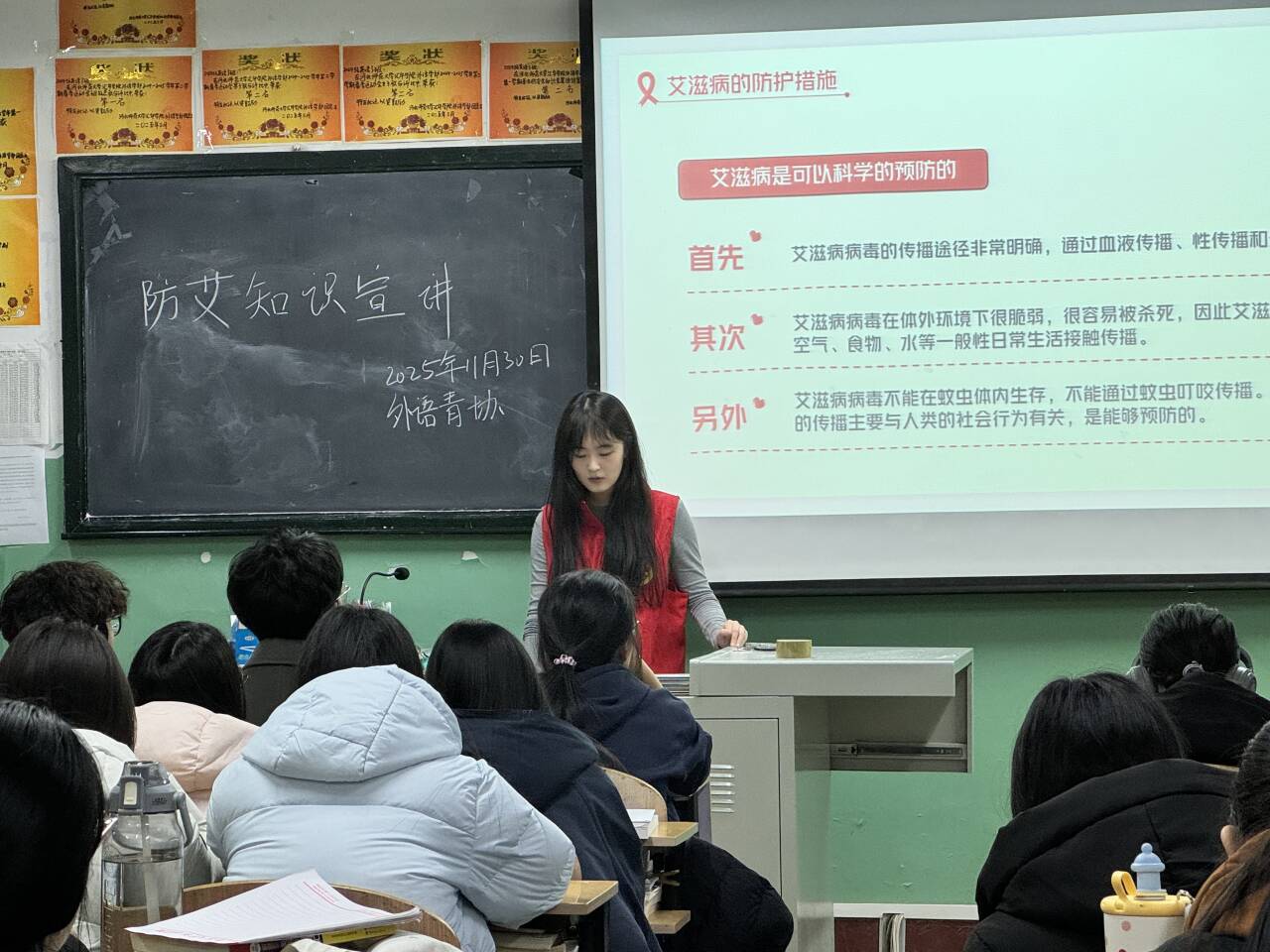 在世界艾滋病日来临之际,为提升学生对艾滋病的科学认知与自我防护能力,引导其树立尊重、平等对待艾滋病患者的观念,11月30日,外语学部面向全体学生开展“携手防艾,健康同行”防艾系列活动。