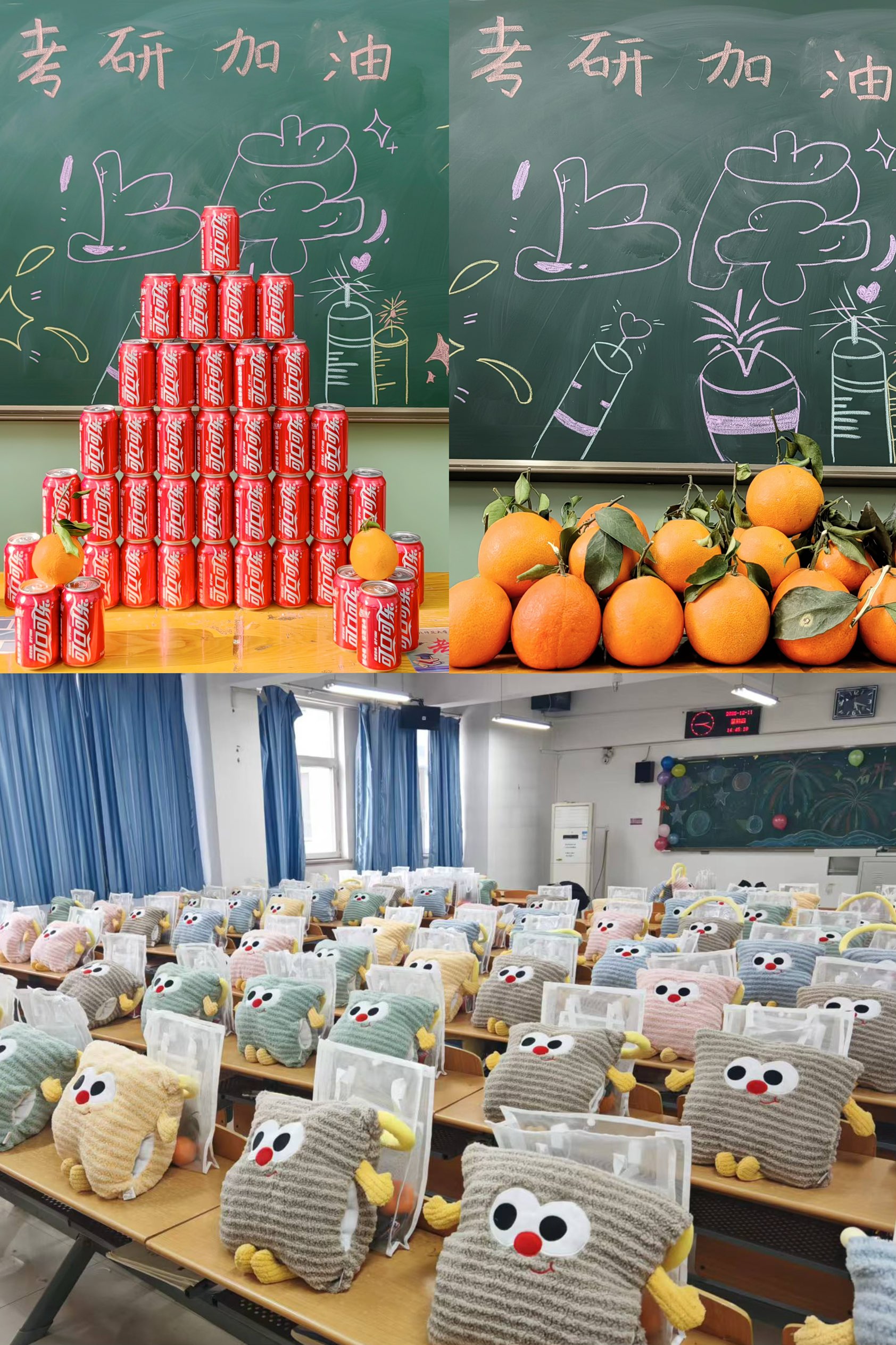 本次活动的核心环节——暖心礼包发放,充分体现学部对考研学子的精准关怀。礼包内包含毛绒暖手抱枕,可有效解决冬日备考保暖需求;透明文具袋、2B铅笔、中性笔等考试必备工具,为学子考场作答提供物资保障;此外,寓意“心想事‘橙’”的橙子与“‘可’定成功”的可乐,既传递美好祝愿,也为紧张的备考氛围注入轻松活力。每份礼包均经过精心筹备,切实满足学子备考实际需求。